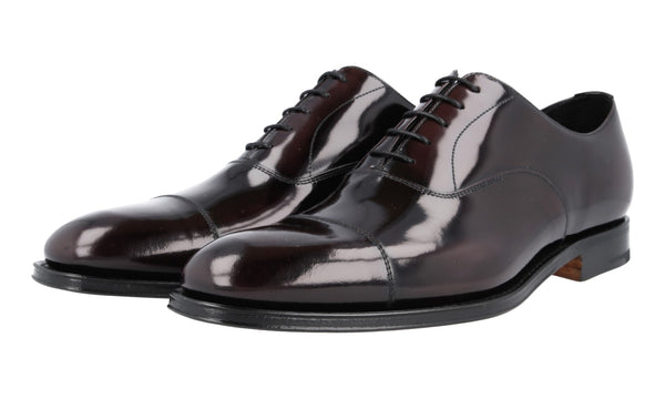 Prada Men's Brown Brushed Spazzolato Leather Polished Oxford Cap Toe Formal Business Shoes 2EB129