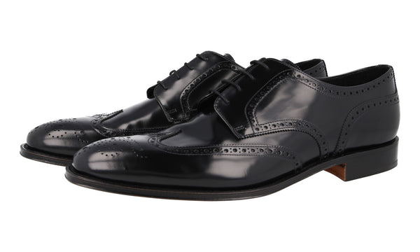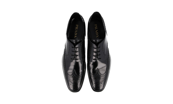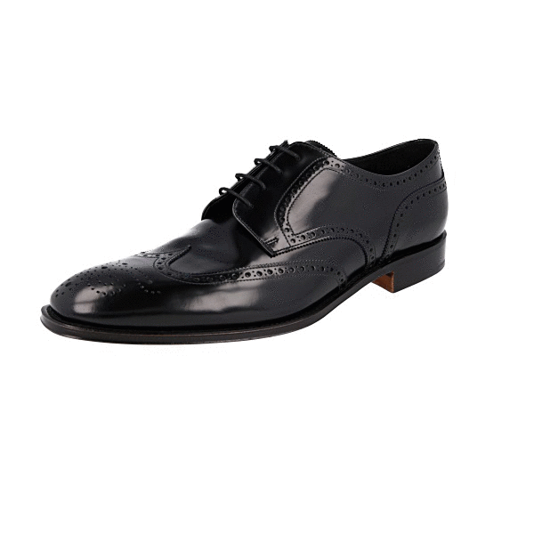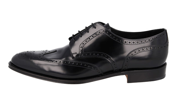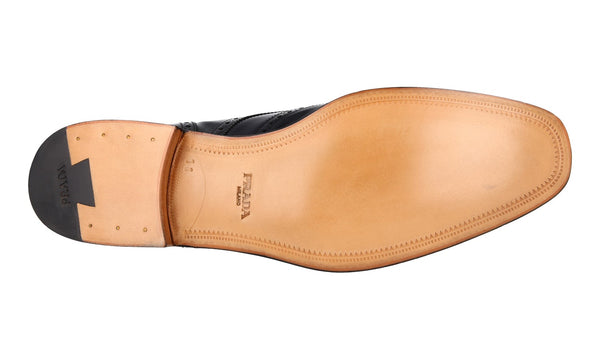 Prada Men's Black Brushed Spazzolato Leather Full Brogue Business Shoes 2EB153