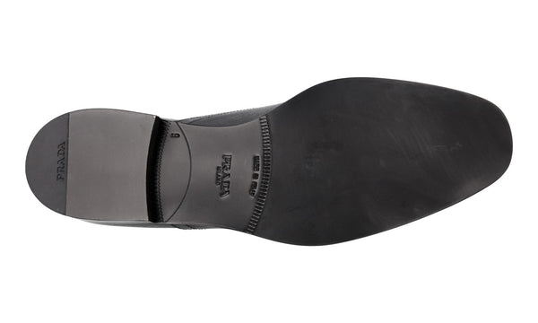 Prada Men's Black Brushed Spazzolato Leather Square Oxford Spray Runway Business Shoes 2EA165
