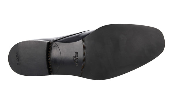 Prada Men's Black Brushed Spazzolato Leather Square Oxford Spray Runway Business Shoes 2EA165