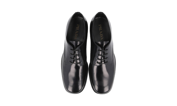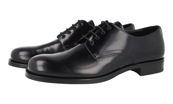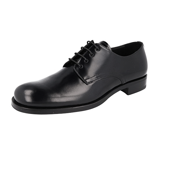 Prada Men's Black Brushed Spazzolato Leather Derby Business Shoes 2EB193