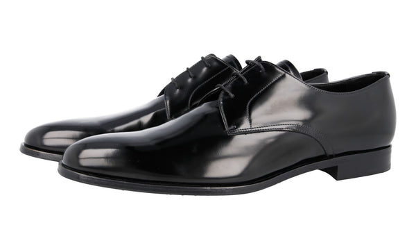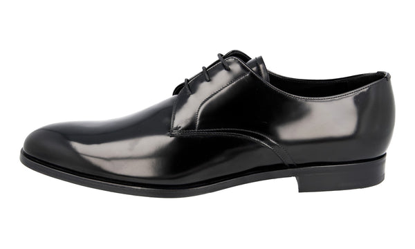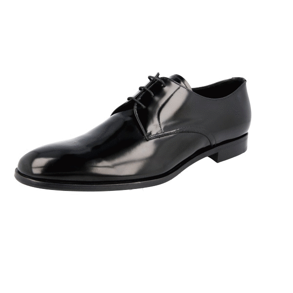 Prada Men's Black Brushed Spazzolato Leather Derby Business Shoes 2EC068