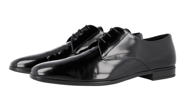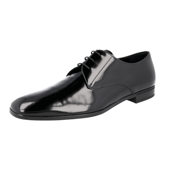 Prada Men's Black Brushed Spazzolato Leather Derby Business Shoes 2EC071