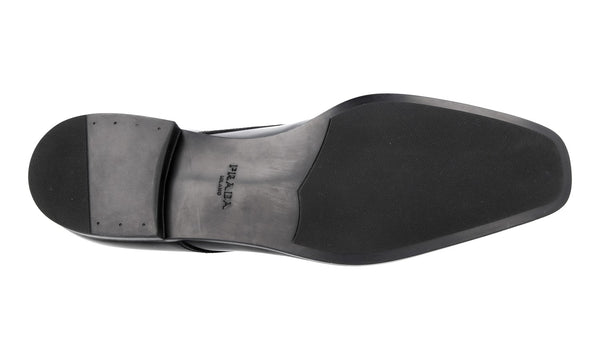 Prada Men's Black Brushed Spazzolato Leather Square Oxford Spray Runway Business Shoes 2EA165