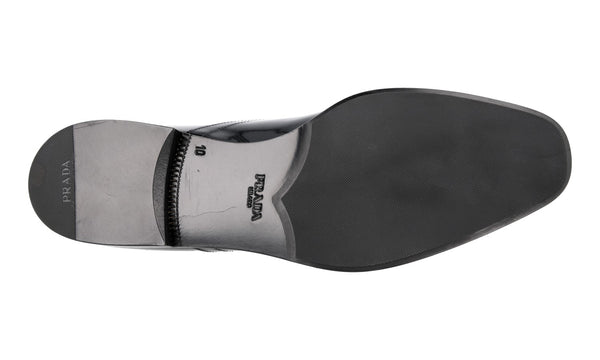 Prada Men's Black Brushed Spazzolato Leather Square Oxford Spray Runway Business Shoes 2EA165