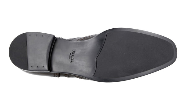 Prada Men's Black Brushed Spazzolato Leather Square Oxford Spray Runway Business Shoes 2EA165