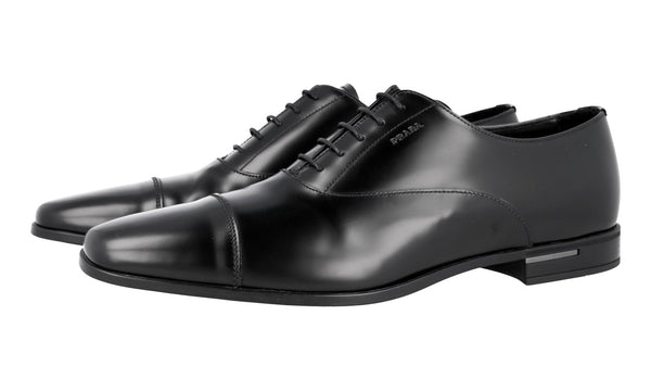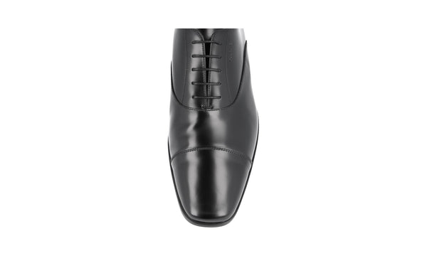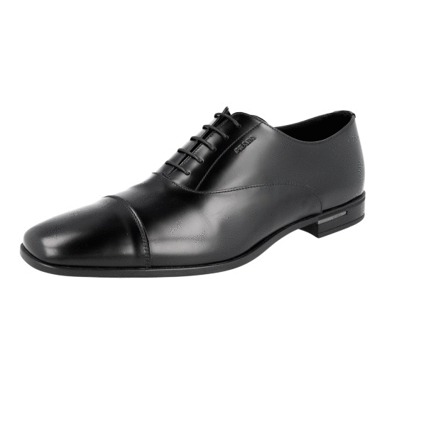 Prada Men's Black Brushed Spazzolato Leather Oxford Business Shoes 2EE190