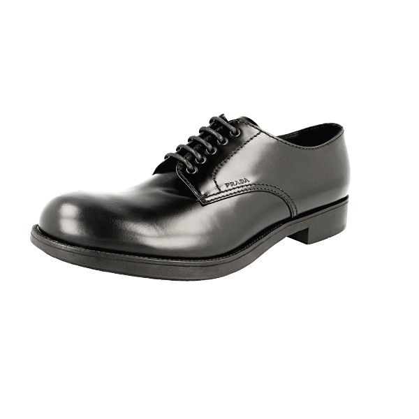 Prada Men's Black welt-sewn Leather Derby Business Shoes 2EE191