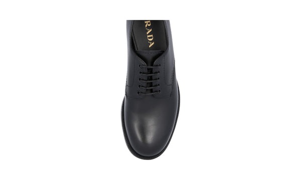 Prada Men's Black Brushed Spazzolato Leather Square Oxford Spray Runway Business Shoes 2EA165