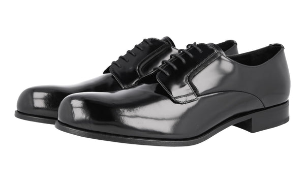 Prada Men's Black Brushed Spazzolato Leather Square Oxford Spray Runway Business Shoes 2EA165