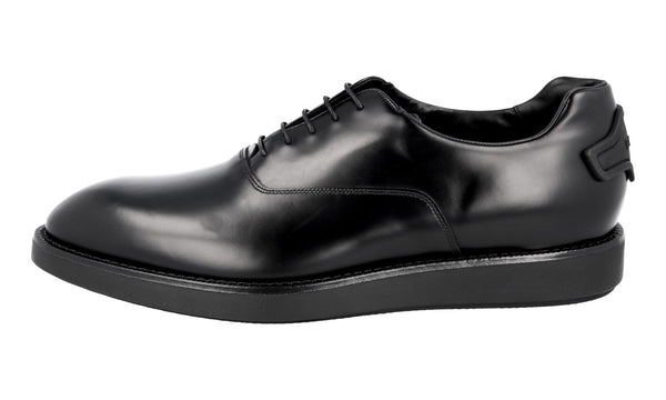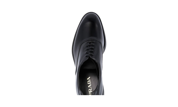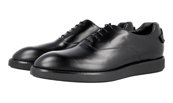 Prada Men's Black Brushed Spazzolato Leather Square Oxford Spray Runway Business Shoes 2EA165