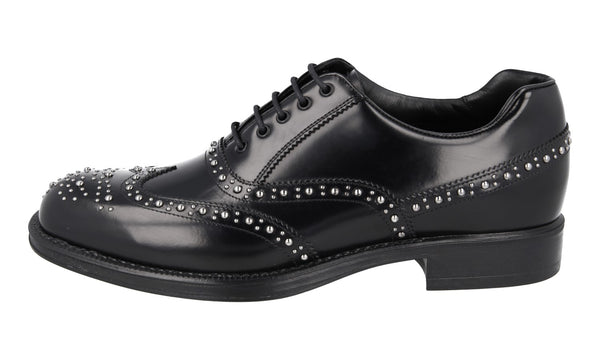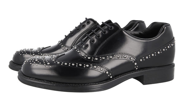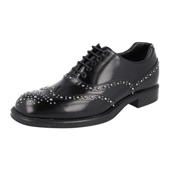 Prada Men's Black Brushed Spazzolato Leather Square Oxford Spray Runway Business Shoes 2EA165