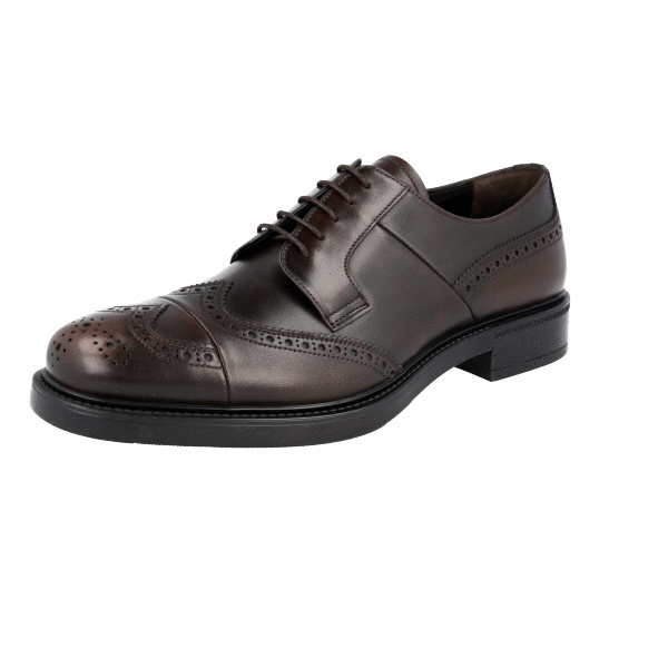 Prada Men's Brown welt-sewn Leather Derby Business Shoes 2EE287