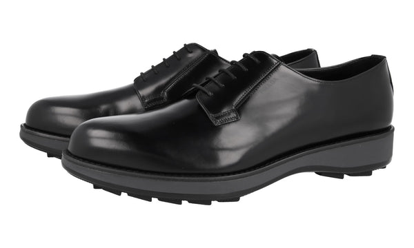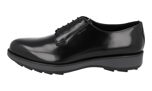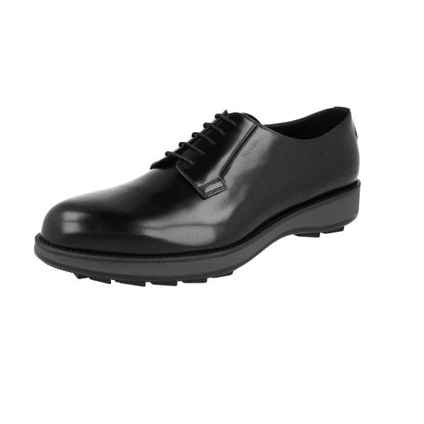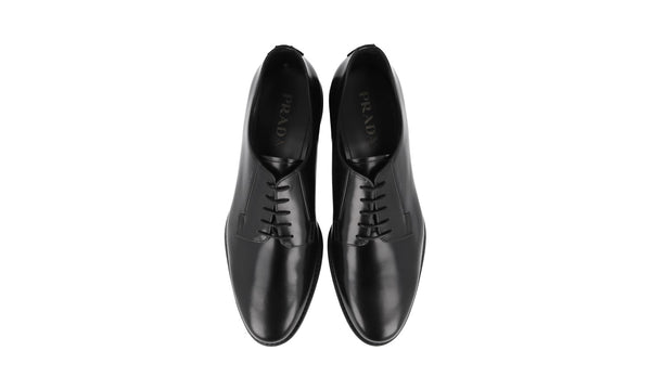Prada Men's Black Brushed Spazzolato Leather Derby Business Shoes 2EE297