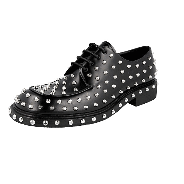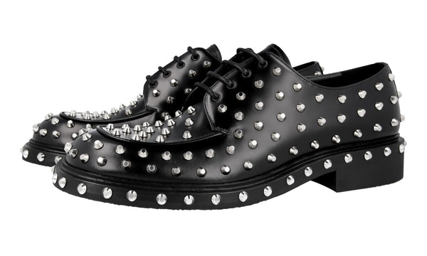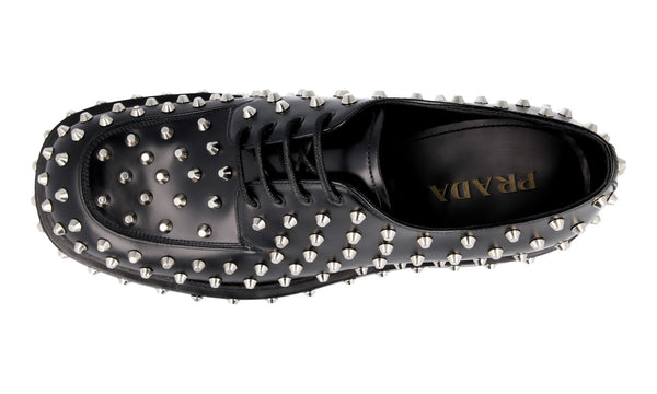 Prada Men's Black Brushed Spazzolato Leather Square Oxford Spray Runway Business Shoes 2EA165
