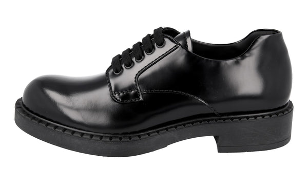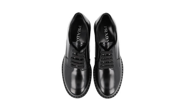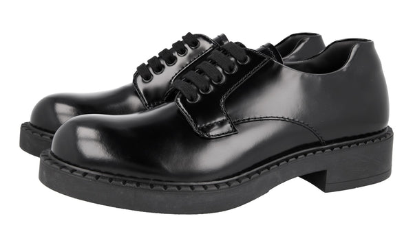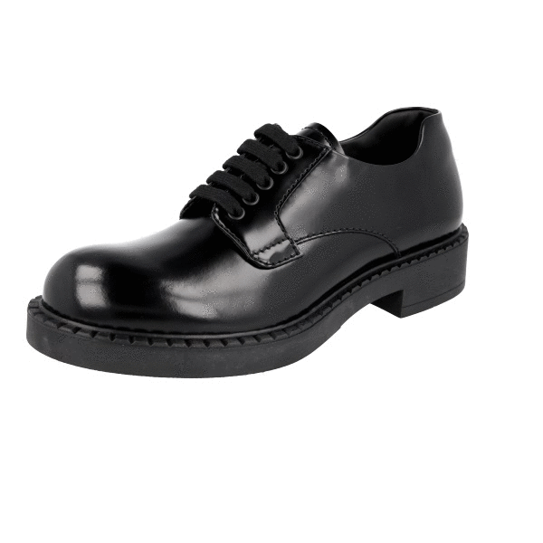 Prada Men's Black Brushed Spazzolato Leather Derby Double Sole Business Shoes 2EE345