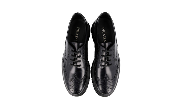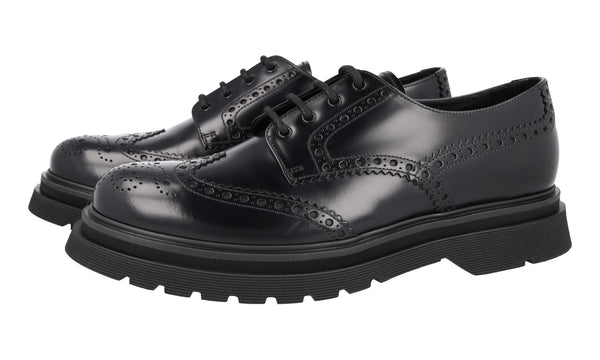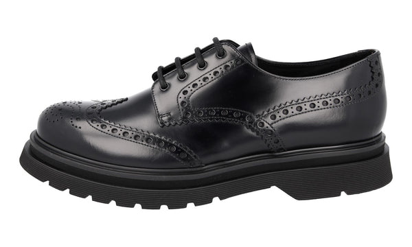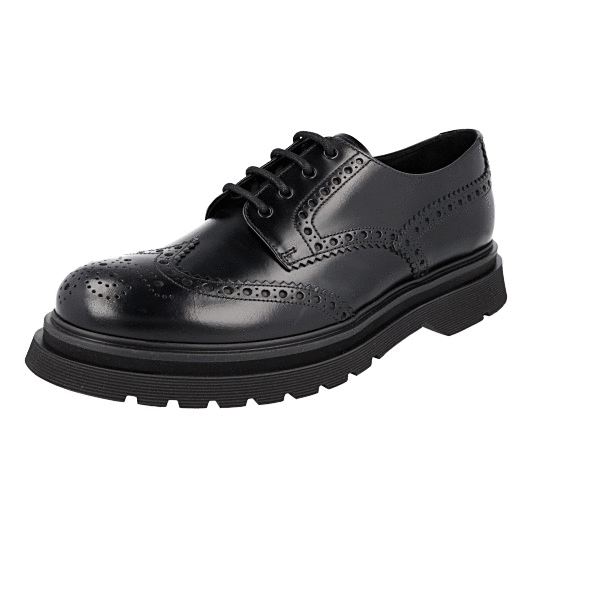 Prada Men's Black Full Brogue Leather Derby Business Shoes 2EE347