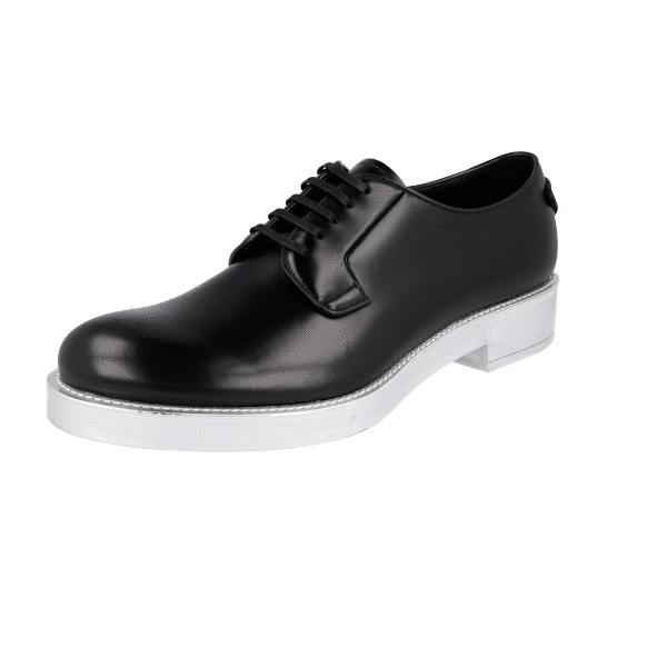 Prada Men's Black welt-sewn Leather Derby Business Shoes 2EE368