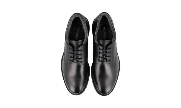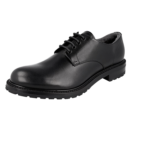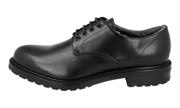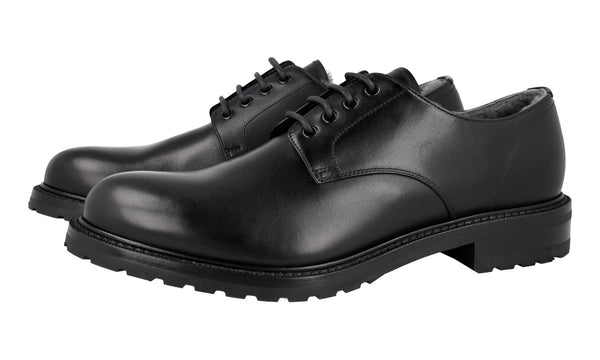 Prada Men's Black Leather Shearling Fur Derby Business Shoes 2EF053