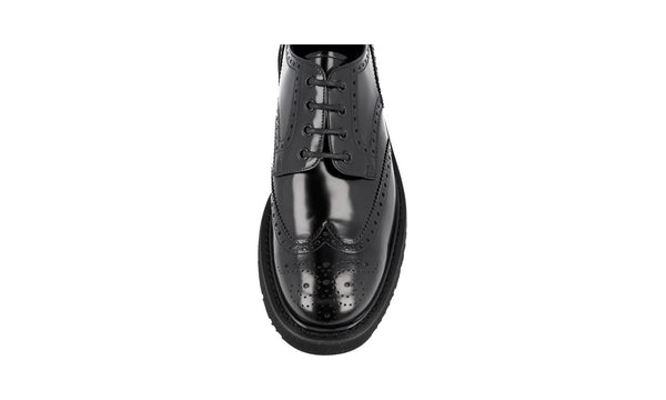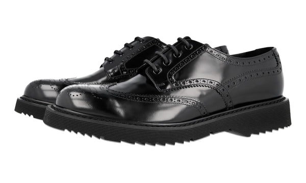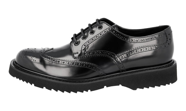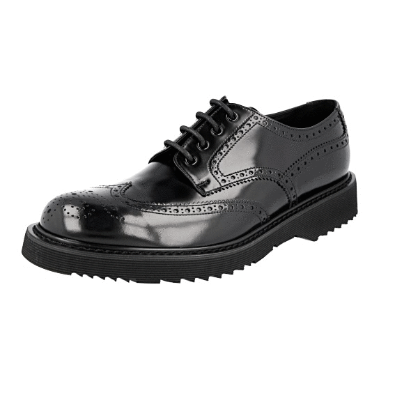 Prada Men's Black Brushed Spazzolato Leather Square Oxford Spray Runway Business Shoes 2EA165