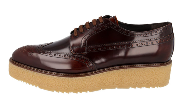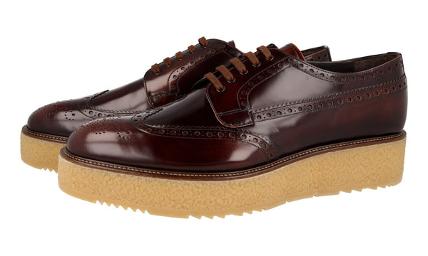 Prada Men's Brown Full Brogue Leather Platform Derby Full Brogue Business Shoes 2EG015