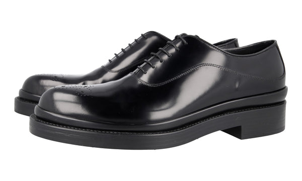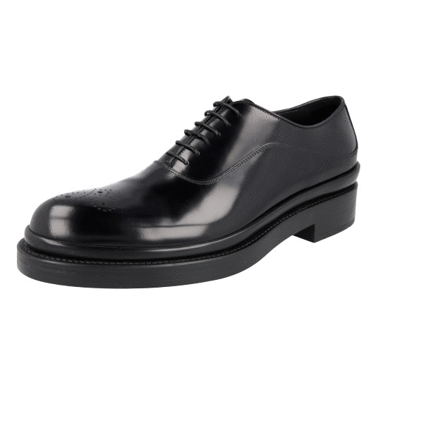 Prada Men's Black Brushed Spazzolato Leather Square Oxford Spray Runway Business Shoes 2EA165