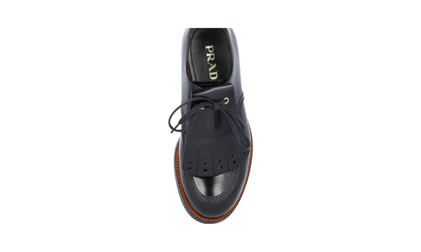 Prada Men's Black welt-sewn Leather Runway Bulky Sole Welt Sewn Kiltie Business Shoes 2EG193