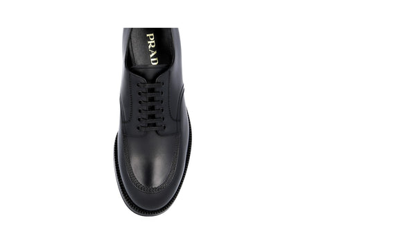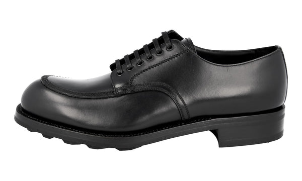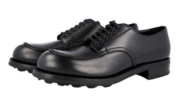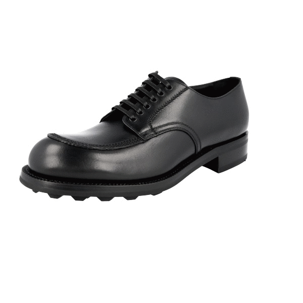 Prada Men's Black welt-sewn Leather Runway Bulky Sole Welt Sewn Derby Business Shoes 2EG194