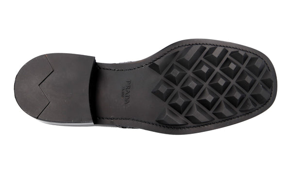 Prada Men's Black Brushed Spazzolato Leather Square Oxford Spray Runway Business Shoes 2EA165