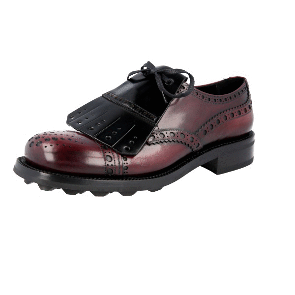 Prada Men's Brown welt-sewn Leather Runway Brogue Kiltie Welt Sewn Bulky Business Shoes 2EG197