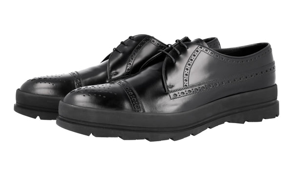 Prada Men's Black Full Brogue Leather Winter Snow Derby Brogue Business Shoes 2EG205