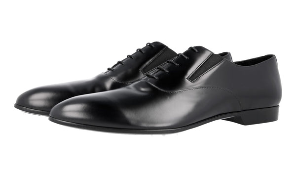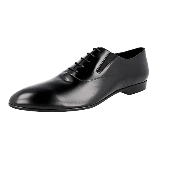 Prada Men's Black Brushed Spazzolato Leather Oxford Flexible Business Shoes 2EG206