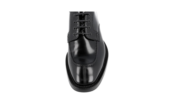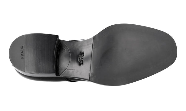 Prada Men's Black Brushed Spazzolato Leather Square Oxford Spray Runway Business Shoes 2EA165