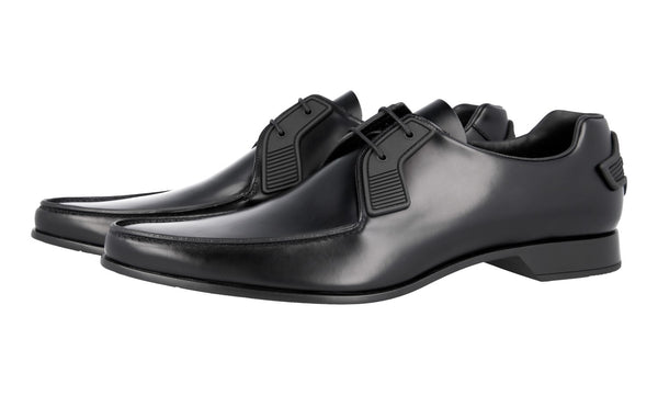 Prada Men's Black Brushed Spazzolato Leather Square Oxford Spray Runway Business Shoes 2EA165