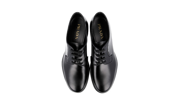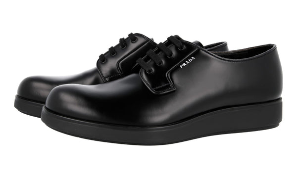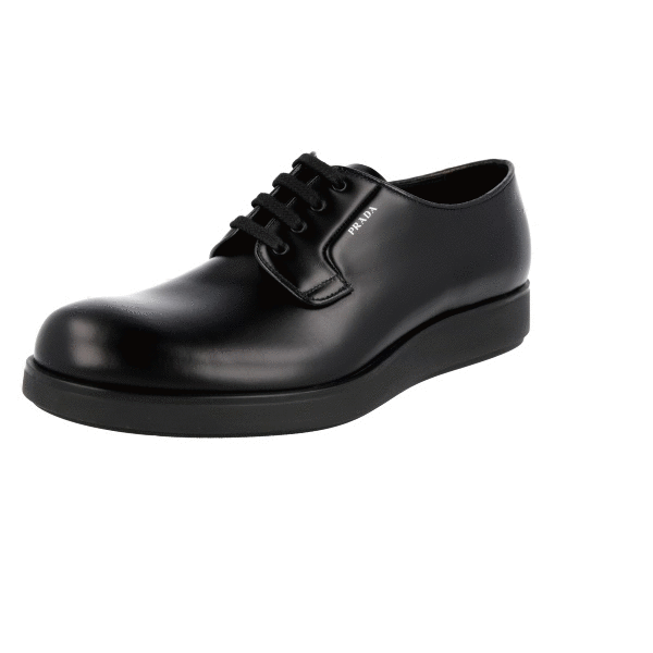 Prada Men's Black Brushed Spazzolato Leather Derby Business Shoes 2EG300