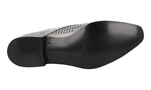 Prada Men's Black Brushed Spazzolato Leather Square Oxford Spray Runway Business Shoes 2EA165