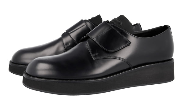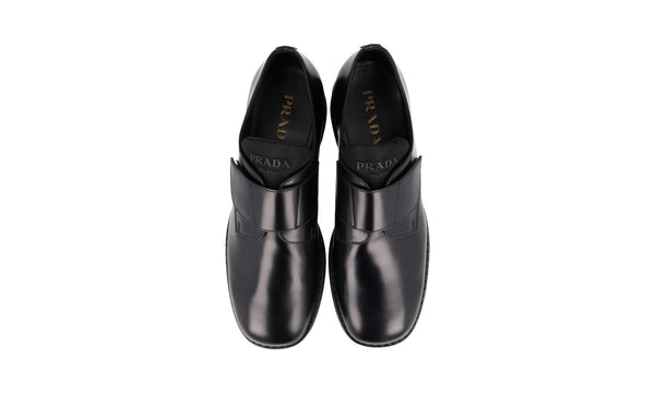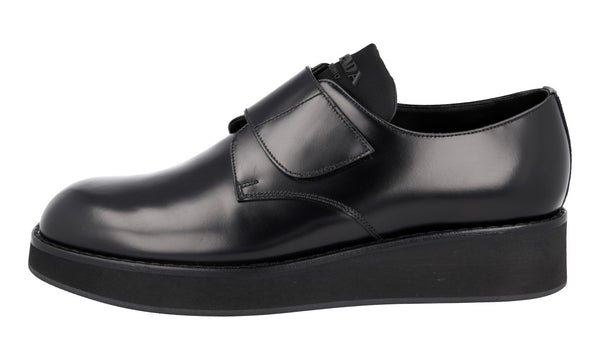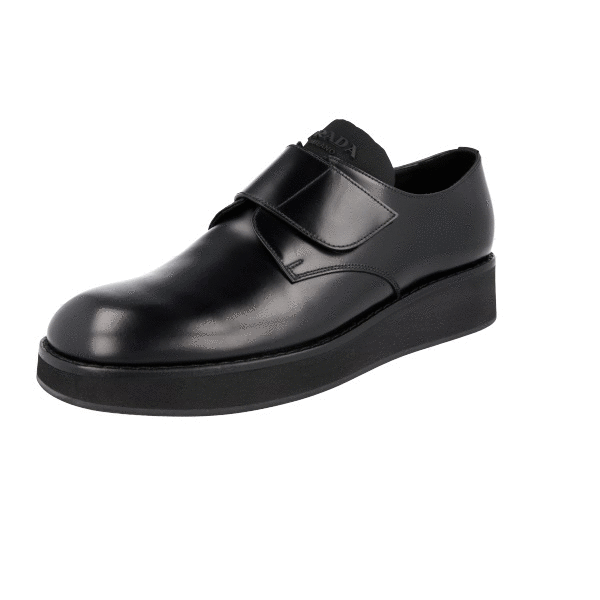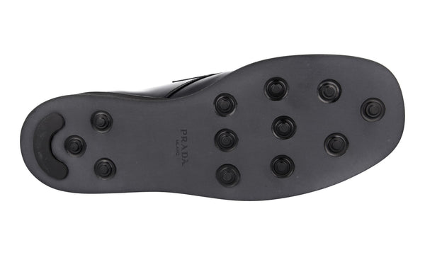 Prada Men's Black Brushed Spazzolato Leather Square Oxford Spray Runway Business Shoes 2EA165