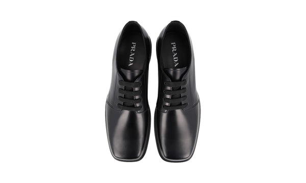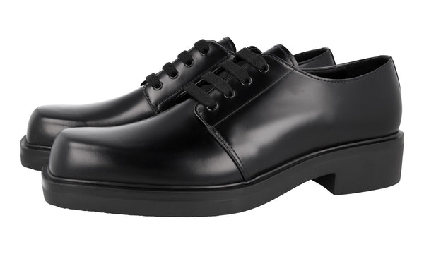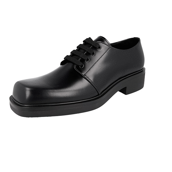 Prada Men's Black Brushed Spazzolato Leather Square Oxford Spray Runway Business Shoes 2EA165