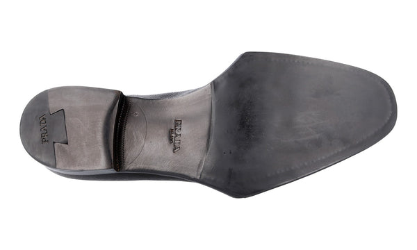 Prada Men's Black Brushed Spazzolato Leather Square Oxford Spray Runway Business Shoes 2EA165