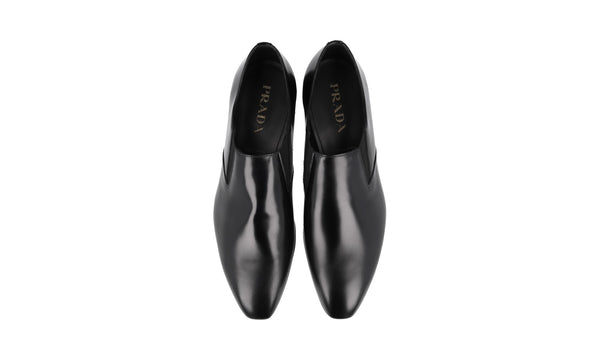 Prada Men's Black Brushed Spazzolato Leather Square Oxford Spray Runway Business Shoes 2EA165
