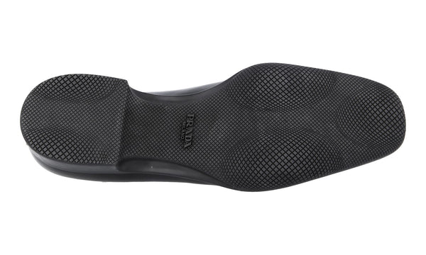 Prada Men's Black Brushed Spazzolato Leather Square Oxford Spray Runway Business Shoes 2EA165