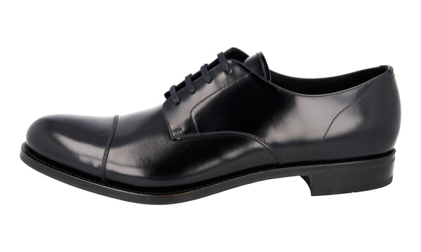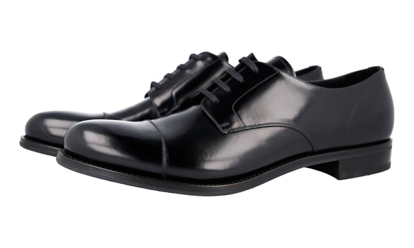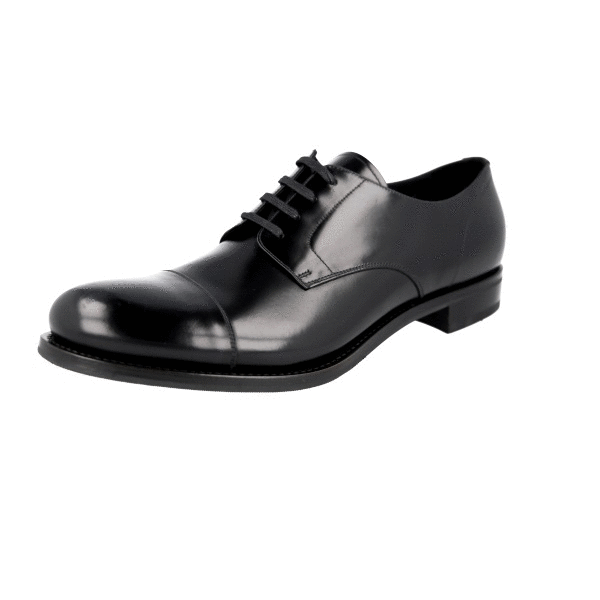Prada Men's Black welt-sewn Leather Cap Toe Derby Business Shoes DNC103