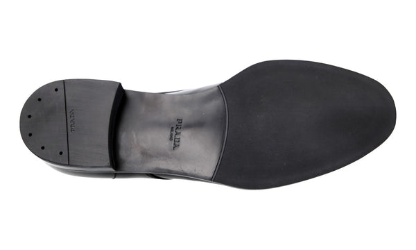 Prada Men's Black Brushed Spazzolato Leather Square Oxford Spray Runway Business Shoes 2EA165