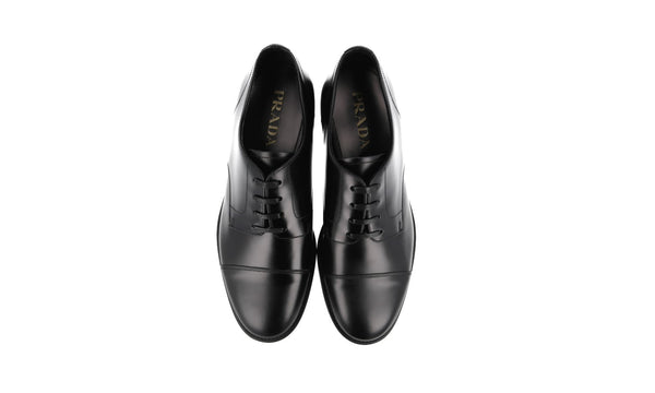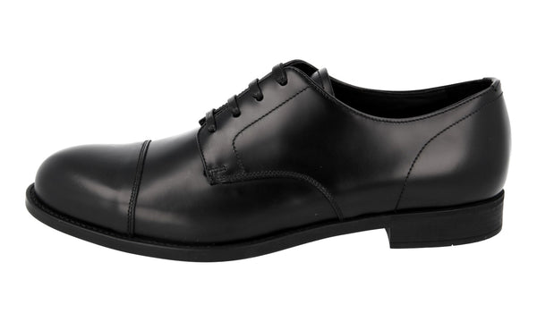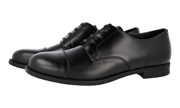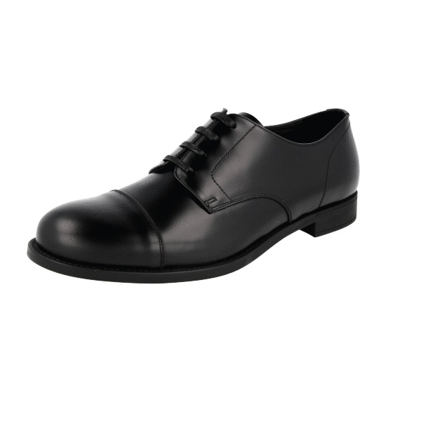 Prada Men's Black Brushed Spazzolato Leather Cap Toe Derby Business Shoes DNC108