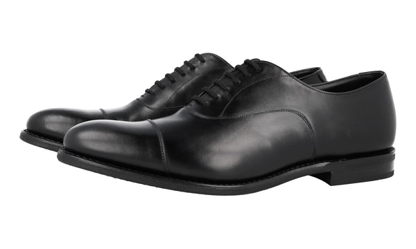 Prada Men's Black Brushed Spazzolato Leather Square Oxford Spray Runway Business Shoes 2EA165
