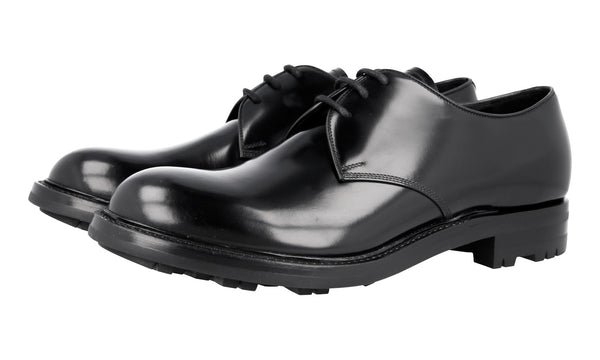Prada Men's Black welt-sewn Leather Derby Business Shoes PCU009