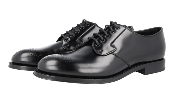 Prada Men's Black welt-sewn Leather Derby Business Shoes PCU010