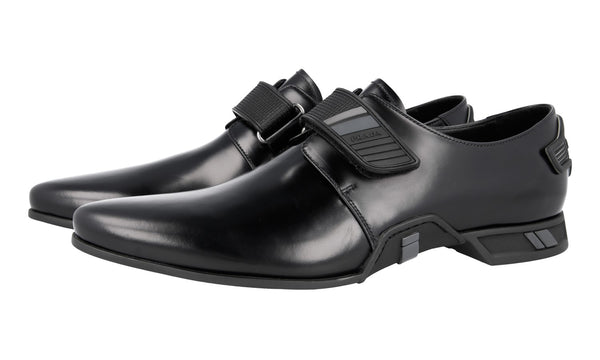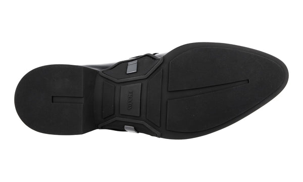Prada Men's Black Brushed Spazzolato Leather Square Oxford Spray Runway Business Shoes 2EA165
