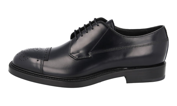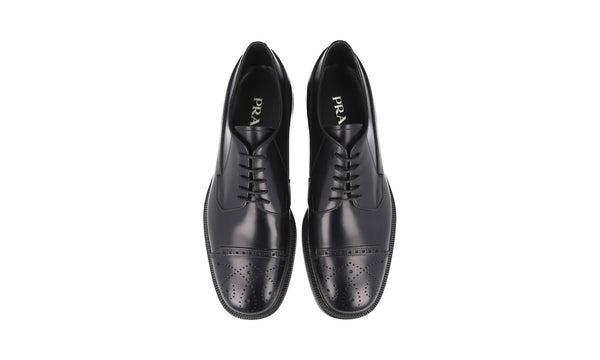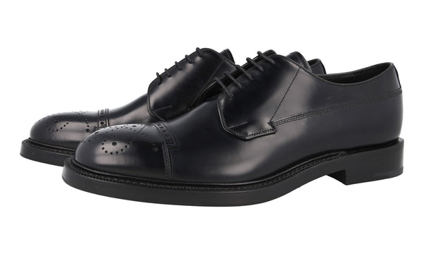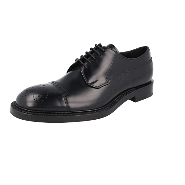 Prada Men's Black welt-sewn Leather Derby Business Shoes PI672B