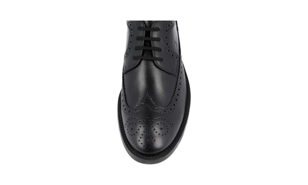 Prada Men's Black Brushed Spazzolato Leather Square Oxford Spray Runway Business Shoes 2EA165